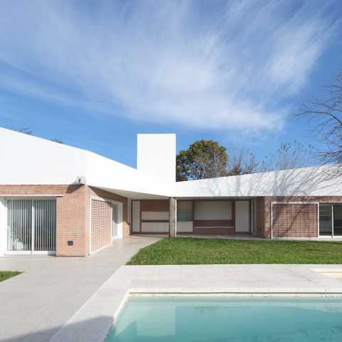 “Recortes de un recuerdo” (Fragments of a memory) comprises the renovation and expansion of a weekend house in Funes, Santa Fe, Argentina. In order to meet the technical and programmatic requirements of the project, resources linked to the clients’ family homes were used. Our primary goal was to achieve a convergence of their particular tastes; hence we resorted to their history as an additional resource in the project. These ideas, which appear as cut-out memories of the houses where they lived and grew up (their spaces, facades, colors or finishes), are transferred as intentions about what their own house should be like.