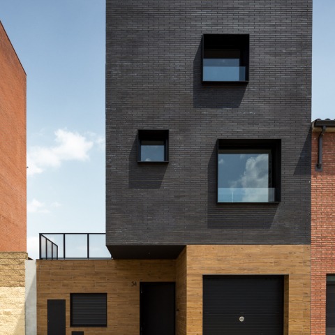 The Ripollet house, built-in black brick, is a viewpoint towards the park that is next to it. The windows are paintings that frame the landscape like works of art hanging on the wall. All the rooms have natural light and ventilation, turning the interior environment into pleasant and comfortable spaces. Bathrooms and the kitchen take advantage of skylights to have an extra entrance of natural light and an unusual view of the sky.
