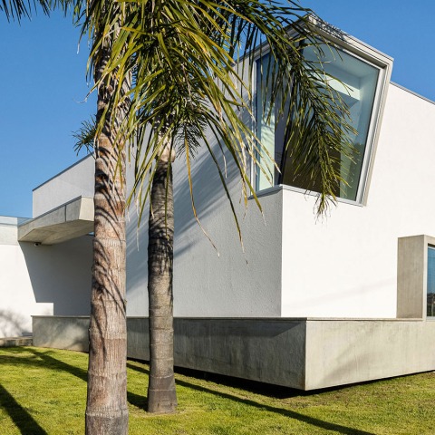 All the openings of the volumes seek a language in which the notion of the window as an element of interior-exterior relationship is assumed. In the bedrooms, the need for seclusion led to the creation of a horizontalized wooden skin, which reinforces the grammatical exercise of a house that intends to be modern but contaminated by a search for fluidity and coherence in the architectural language.