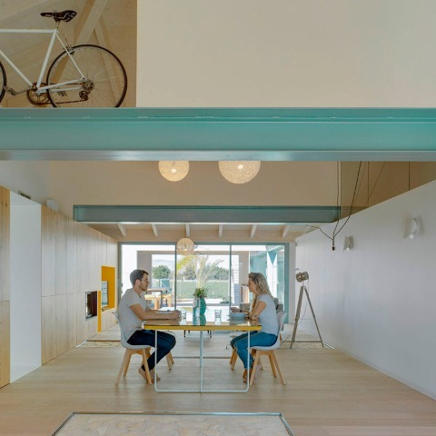 - The central strip, in charge of connecting the house with the 160-meter-deep garden, for this, the existing load-bearing walls are broken, beams are placed and the upper part is closed with glass.