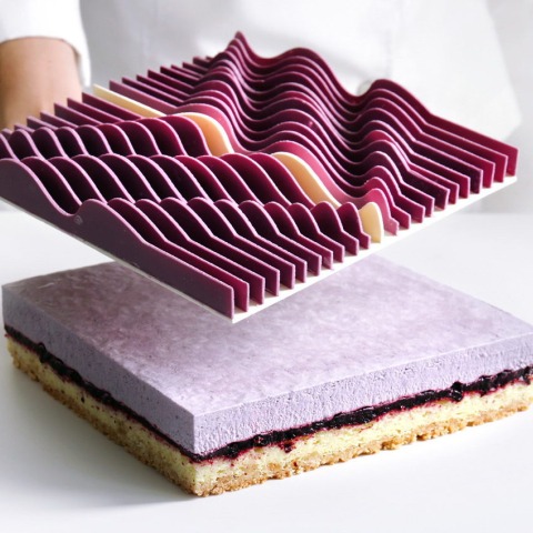 Inspired by José, I wasted no time and made the 3D chocolate sculpture by his drawings. I have friends who are crazy about different machines and cutting tools. These unstoppable enthusiasts created their own workshop in my city called Garage Hub. We tried to cut out the slices from many sheets of red and white chocolate. It worked extremely well. Once the cutting was done, I assembled the pieces and put the composition on top of the berry tart. What an amazing result! It was a magical collaboration of three artists: a sculptor, an engineer and a pastry chef – each of us an artist in their own domain.