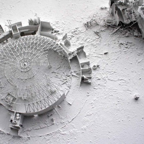 With an aesthetic that clearly reminds us of the models produced by Morphosis (Michael Rotondi and Thom Mayne), the combination of art and architecture project is the easiest way to define the work of Gerry Judah. Today it has completed the opening of ARCHITECTURAL MAQUETTE, exhibition of which we reported Monday.