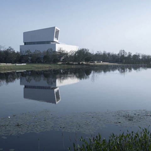 The project site is located in the Minghu Lake area, the southeastern part of the planned new town of Chuzhou city, Anhui Province. It is adjacent to Chuzhou-Yangzhou Expressway and the Beijing-Shanghai High-speed Railway, surrounded with a favorable landscape environment. The Experience Center is designed to guide the visitors through the site. The structure, in a natural style, will take the form of mists encircling the wetland on a cloudy day or look like a rock standing still in the field during sunny days.