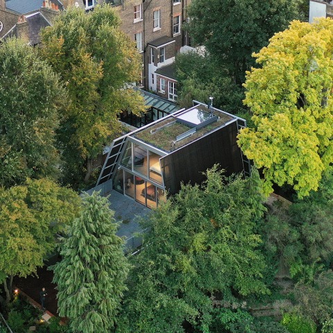 Located in a Hampstead mews and discretely hidden behind a Victorian pub, Reciprocal House is a newly completed 280 sqm family home by Gianni Botsford Architects replacing a non-descript and dilapidated 1860s cottage while renovating its exemplary 1969 extension by Foster Associates (now Foster + Partners).