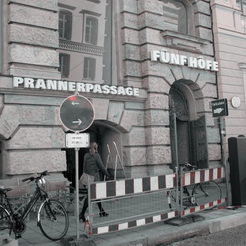 Access to offices in the complex of Fünf Höfe. Photography © Melissa Schumacher.