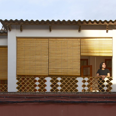 The recovered balconies, the relocated glazed interior doors, the rich decoration of the bathroom ceiling and its deep skylight, which hides the secrets of the Spanish postwar period, coexist with the now naked beams that supported the reed roof, the new barrel vault of the lobby, or the gleams of the ceramic lattice that reflects the light from the west, and transports us to the nearby Mediterranean Sea.