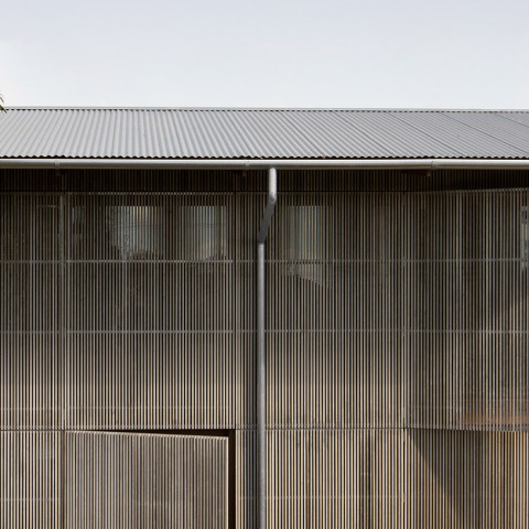 Not really, although when closed the house is incredibly private despite the site being open all around, and through use the activation of the screens allow transparency and animation. We didn’t really set out to make the exterior look a certain way, however quite enjoy how the exterior is greying off as a backdrop to the vegetation, and allows the richer finish of the timber main structure and lining to become evident when screens are open, or gently glows amongst the trees at night.