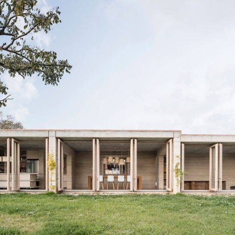 All the program was overturned around a patio, actually surrounding the garden or looking at the rural landscape that surrounds it. All the house designed as if it were an inhabited wall, so when the weather is good, the galleries of all the rooms can be completely opened, becoming a large porch open to the garden. A project, protected and open, a good project that knows how to read the place where it is implanted without renouncing its contemporaneity.