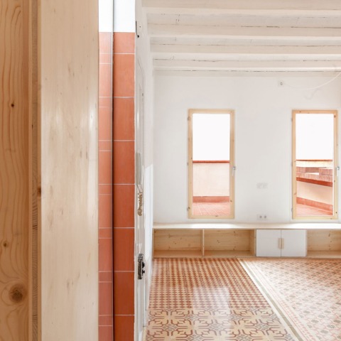 The intervention is located in an attic of a residential complex, built in the end of the 19th century in the neighborhood of Sants. The house is in a retracted position, respect to the plan of the main façade. A common practice in our cities, that benefits the streets by providing more light and air, and favors neighbors serving them quite often with a terrace of common use.