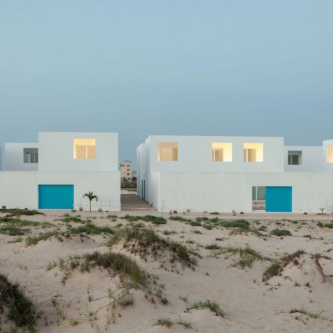 José Adrião Arquitetos studio is the author of this project; a complex of houses with simple and informal shapes and colors, which reflect the place's character - relaxed and casual, such as Estoril Beach. They form a small residential area, apparently independent, but planned keeping in mind the future urbanization of the environment, as well as its relationship with the ocean.