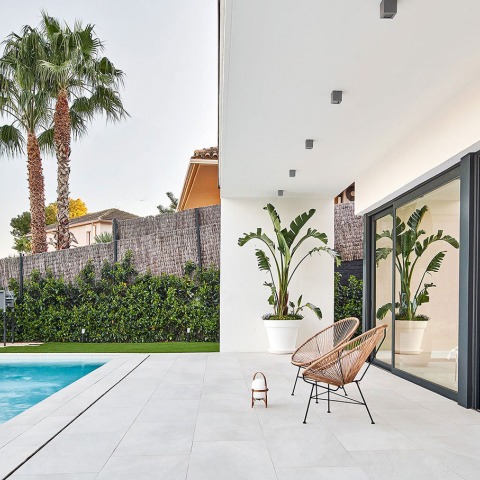 Energy efficiency has been a premise in the conception of this house. The project proposes, in terms of light control, both direct and indirect, openings that are distributed where thematically best can enhance the characteristics and visual and thermal needs of the property. The structure of the house itself provides passive solar architecture solutions, through porches of different dimensions. The rainwater from the roofs is collected in tanks and reused to irrigate the garden area. At the same time, the house integrates an air conditioning system using aerothermal technology, which together with the thermal insulation proposed in the roofs, the construction system itself and the exhaustive study of the composition of the different skins of the building, have made this house have obtained an energy certification A.