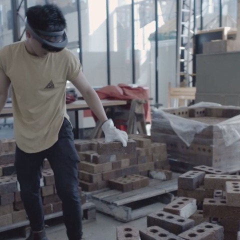 Fusing augmented reality with the physical space, Fologram seeks to facilitate the construction of complex designs (for example, parametric designs that require a series of measurements, verification, and specific care) through digital instructions that are virtually superimposed into the workspace, directing a step-by-step guide for bricklayers during the construction process.