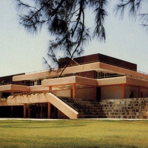 The Kala Academy was originally started in 1973 but was only completed ten years later. The three-storey building’s main feature is the large pergola above the entrance, which acts as an extension to the foyer of the main auditorium and amphitheater. The entrance space acts as a funnel to the building from the Campal (one of the major tree-lined avenues of the city) towards the casuarina trees along the water.