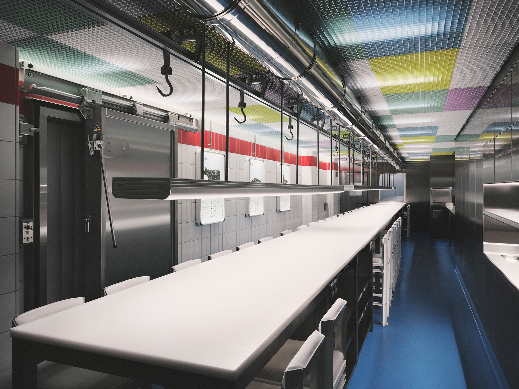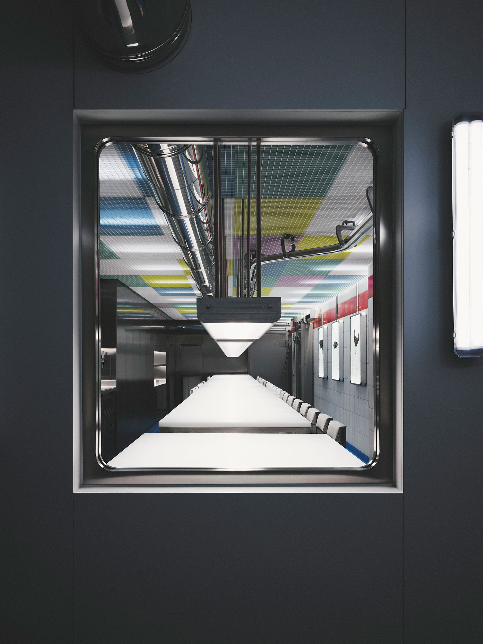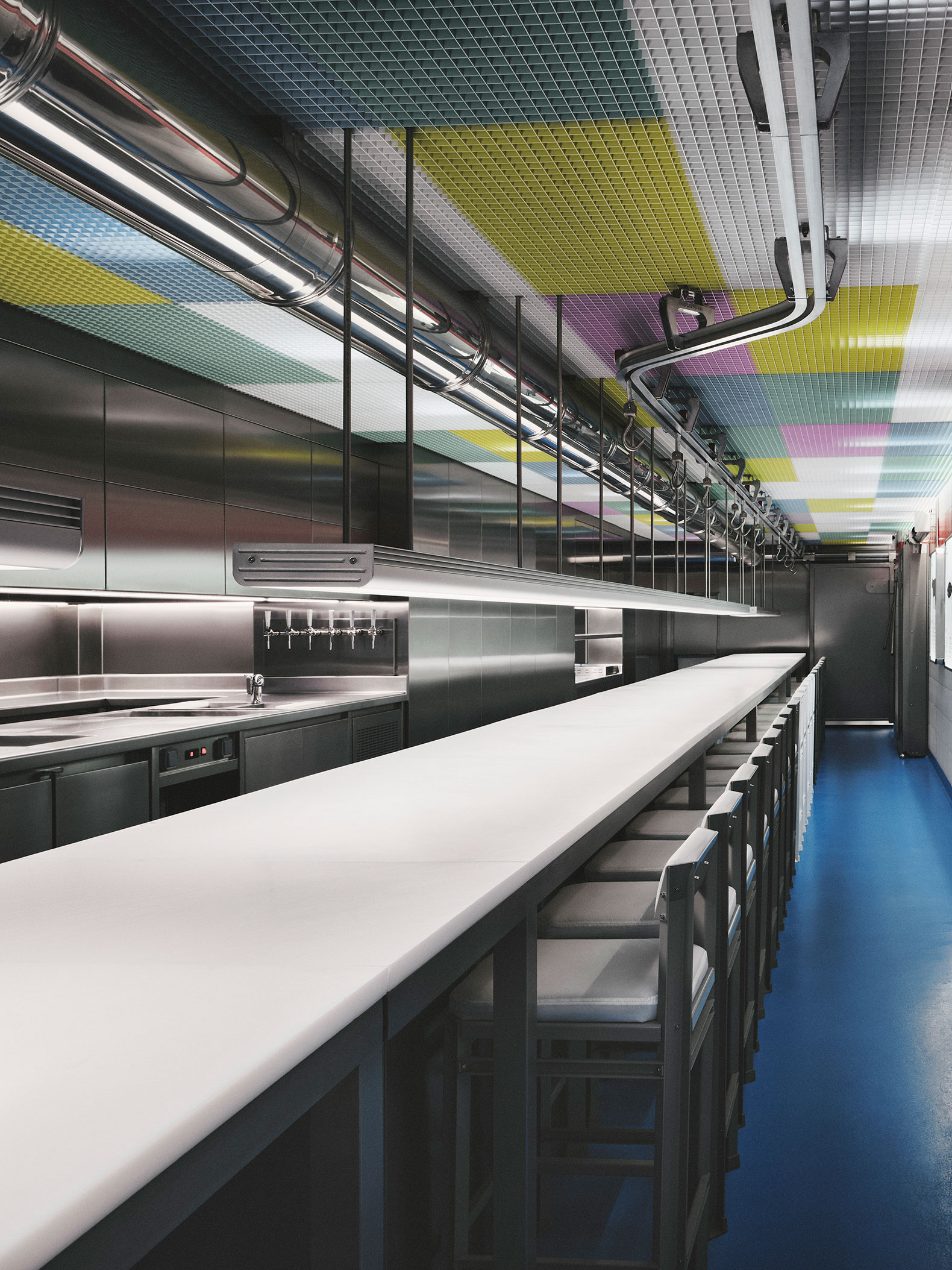 Unit 28 is a dining space that preserves the tradition of "Sala de Despiece" in Madrid, redefining its spatial identity at the intersection between the first and the latest of their restaurants. The project pays tribute to the origins of "SDD" while simultaneously establishing a clear link with its new chapter, "Sala Cero," also designed by yyplusplus.