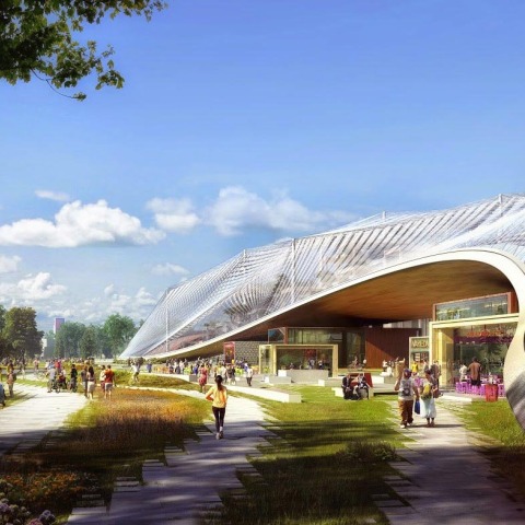The project-plan, submitted to city council today, proposes to develop four sites and expand the company’s home office with a series of canopy like buildings organized within a flexible landscape of bicycle paths and commercial opportunities for local companies.