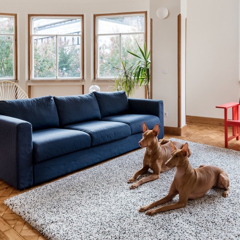 The new layout opens up a second circulation axis adjacent to the main façade, flooding the space with light from both sides. The bedrooms are placed inside an open layout of social spaces as capsules, albeit preserving their privacy through the use of curtains. The spacious living room is located in the elbow of the building, divided in two by a simetry axis perfectly coincident with the angle between the two streets.