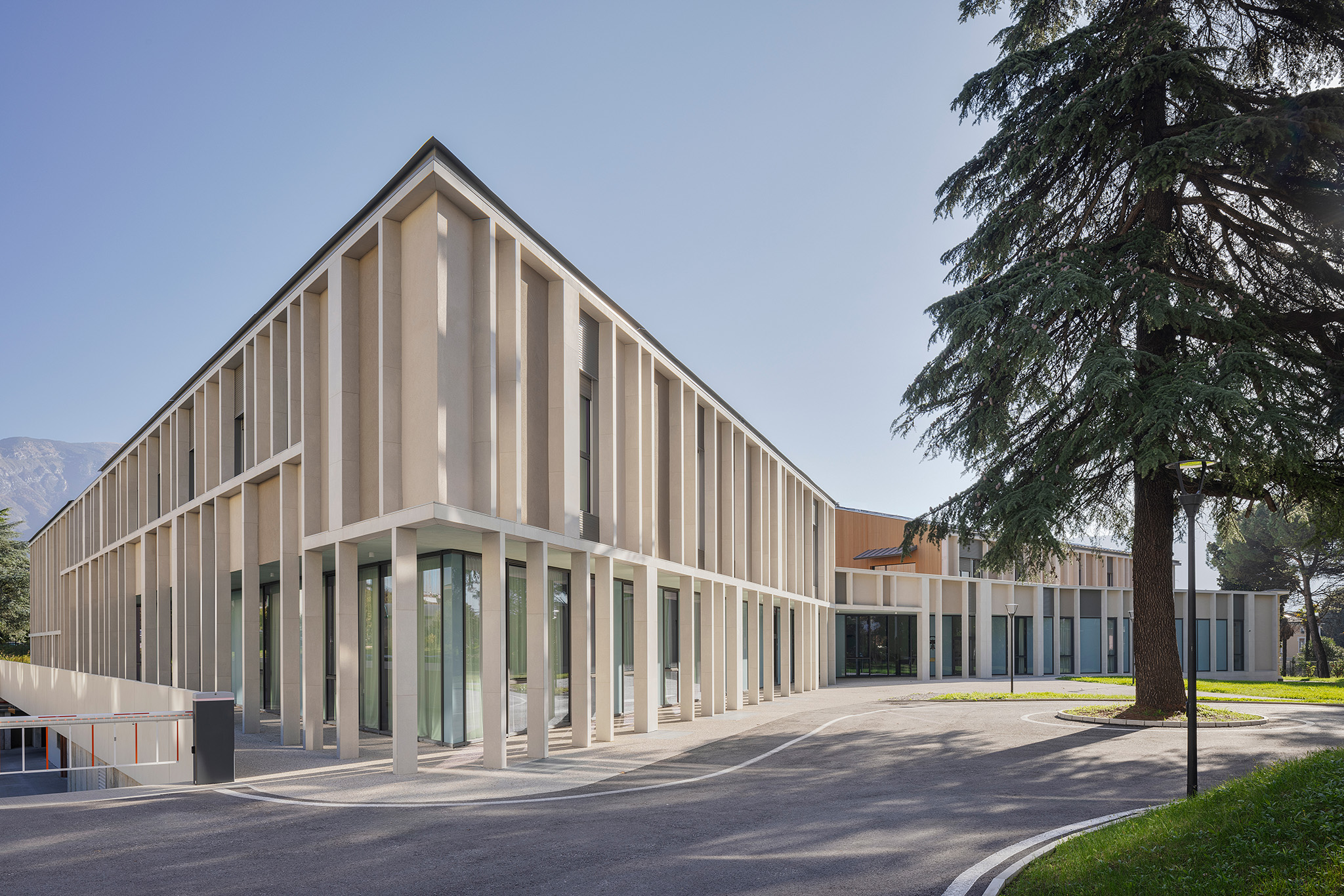Moving away from the traditional approach of “isolation” that has often characterized such health facilities, the new complex is thoughtfully integrated into the urban fabric of Riva del Garda, fostering interaction and dialogue with its surroundings. The citadel is not just a place of care but an inclusive space that enhances both the well-being of its guests and its relationship with the city.