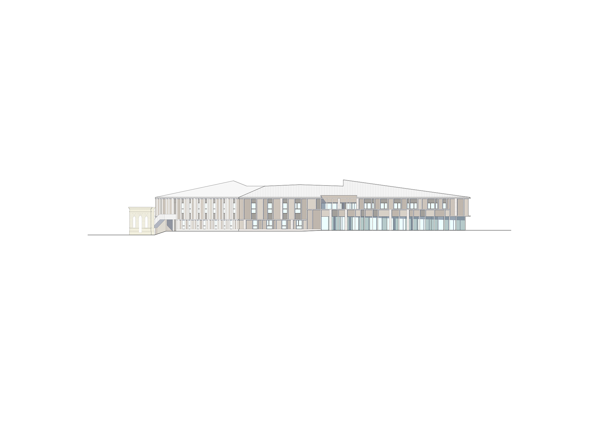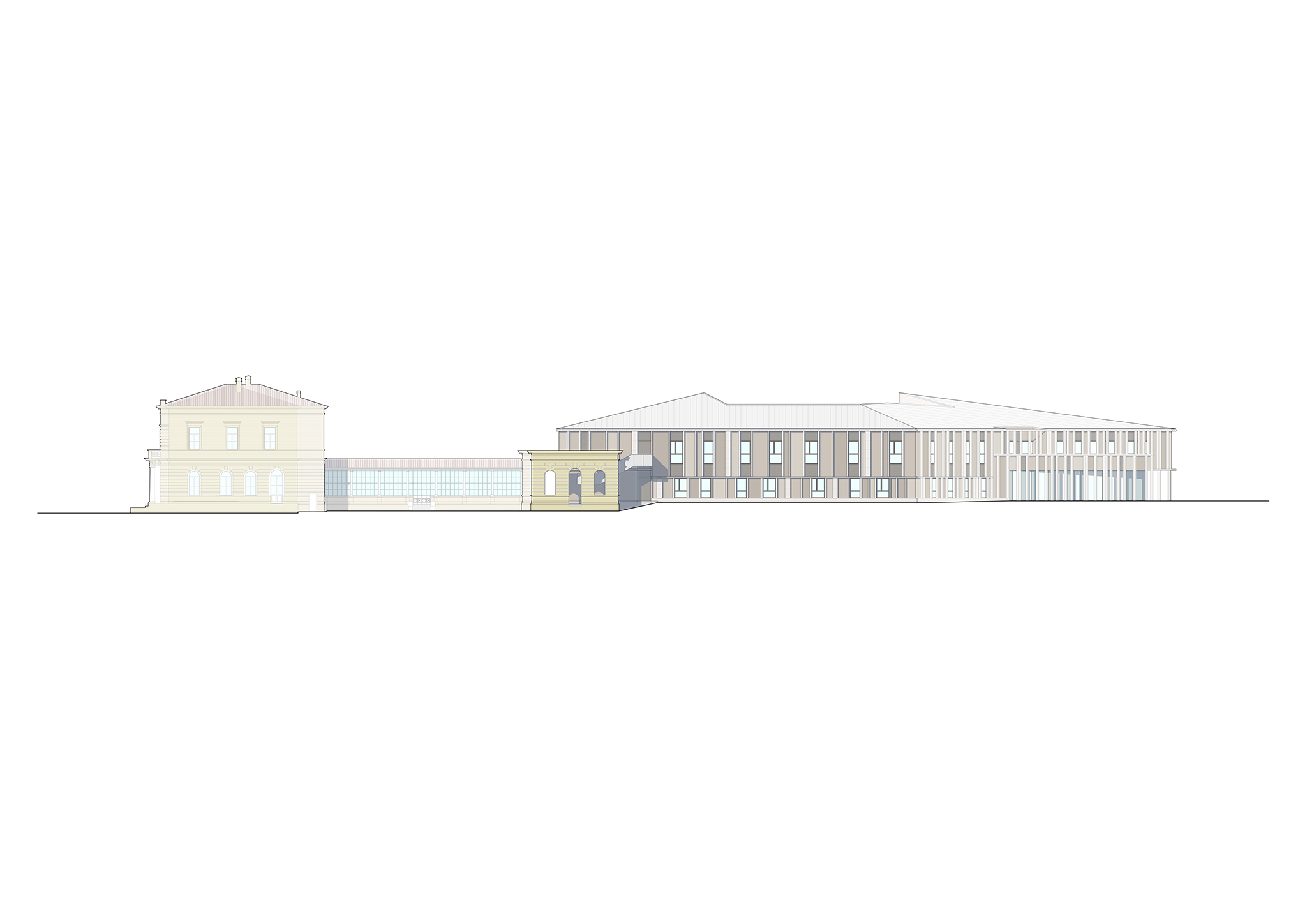Winner of the international competition for the new Welcoming Citadel within the former civil hospital – promoted by the Public Service Agency Città di Riva – this project is ruled by hospital design principles placing the vulnerable guests at the center of its focus. The goal was to create not just a service facility, but a welcoming and therapeutic environment that could ensure a high quality lifestyle standards and ensure efficiency and functionality thanks also to the continuous interaction with the surrounding nature.