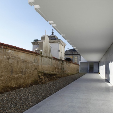 Architecture is identified by to differents spaces both available for burials: one at the basement, with an open porch separeted by an interval of 2,5 meters from the existing cemetery wall. The opening is due to the very close positions fromthe old cemetery wall providing to give natural light to the porch.