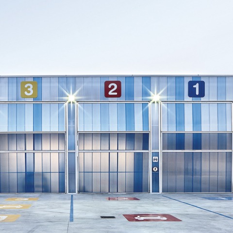 The solution in terms of façade is the use of cellular polycarbonate panels with four different opacity intensities, which achieves a perfect interior lighting inside the building with respect to its north / south position.