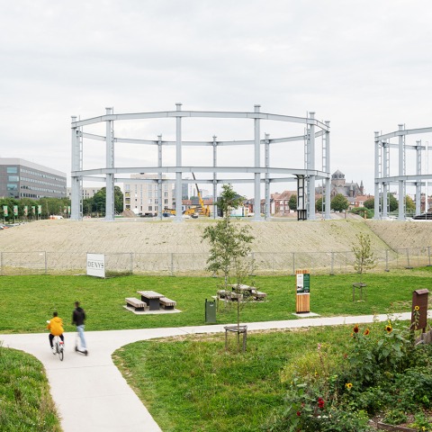 Restoration of gasholders by B juxta architecten. Photograph by Michiel Vergauwe.