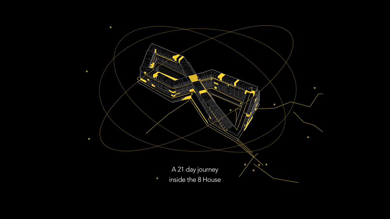 Living Architectures note presents the film in the following terms.- "Inhabiting for about a month the "8 House", by Bjarke Ingels Group, Ila Bêka and Louise Lemoine recount in a diary style their subjective experience of living inside this experiment of "vertical village". As a Lego game, the film builds up a collection of life stories all interconnected by their personal relation to the building. The film draws the lines of a human map which allows the viewer to discover the building through an inner and intimate point of view."