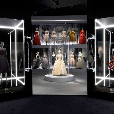 Led by fashion and textiles curator Oriole Cullen and set designer Nathalie Crinière, Designer of Dreams is the first fashion exhibition to be staged in the V&A's new Amanda Levete-designed galleries, and the largest of its kind at the museum since Alexander McQueen: Savage Beauty in 2015. From the recreation of the Avenue Montaigne Dior boutique façade that welcomes visitors, to the temple de l'Amour in Versailles in the "Historicism" section and the expansive ballroom at the exhibition’s close – which features a seven-minute reel of shooting stars and golden glitter rain on the ceiling and walls – this is the V&A in its full glossy regalia.