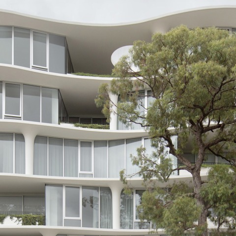 A building structure carefully disguised as an organic sculpture, No. 6 Sydney Street is a collection of 15 residences within a skeleton, grounded in craft, and inspired by nature. Located within the inner-city suburb of Prahran, its form and positioning create fluid connectivity to the natural surroundings of the adjacent Orrong Romanis Reserve.