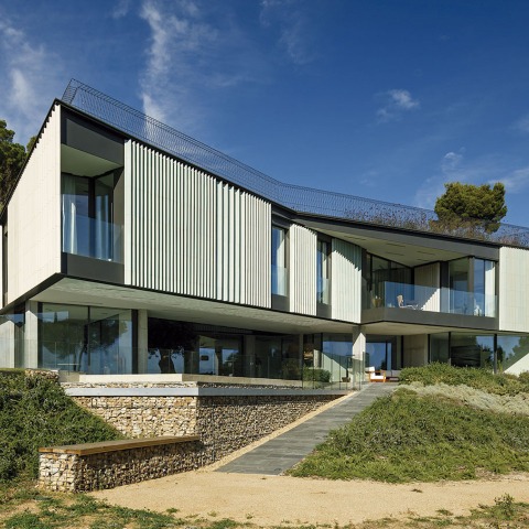 Happy House is a single-family house on the hillside of Aiguablava, in Begur (Girona), overlooking the natural cove. The architectural design is based on criteria of integration and sustainability with its immediate surroundings, seeking continuity with the terrain and landscape from a concept of maximum energy efficiency and low carbon footprint.