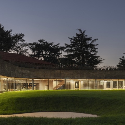 The new design by Carlo Ratti Associati is created by excavating a section of the land, rising 5 metres above the ground. The large dining room is crowned with a green roof of compacted earth that allows it to blend into the natural environment, merging the natural with the artificial.
