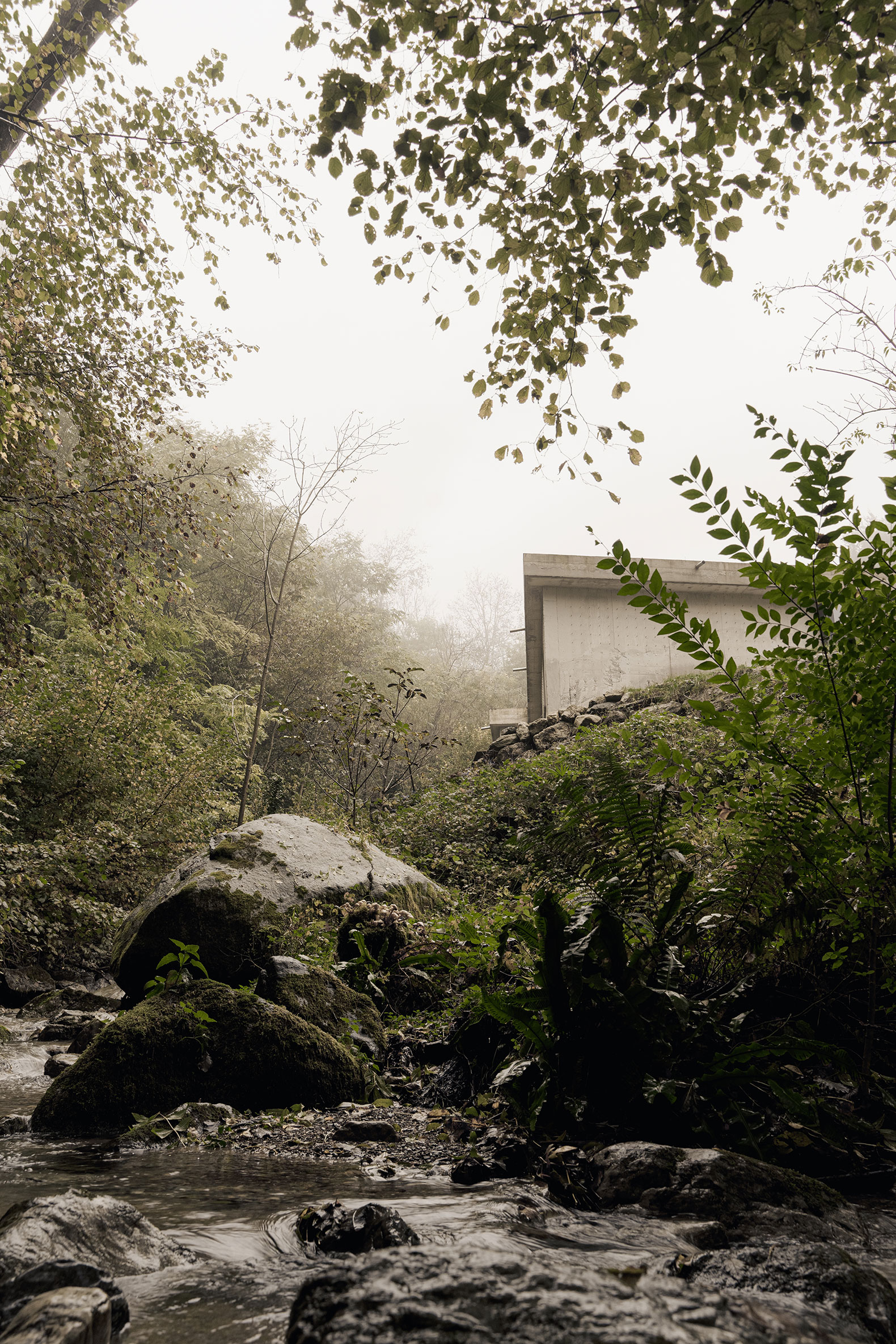 The reinforced concrete façade participates in this process and embodies a sense of transformation — a transfiguration of place. The small steel ties that once held the perimeter formwork are exposed to the river’s humidity and naturally cor-rode over time. The structure “weeps” rust; its tears stain the material. The archi-tecture lives — it ages, it gathers experience. This seemingly decorative feature is, in truth, a dynamic acknowledgment of site, achieved by reinterpreting a conven-tional building technique through an understanding of chemical reaction and a sensitivity to the inherent characteristics of place.