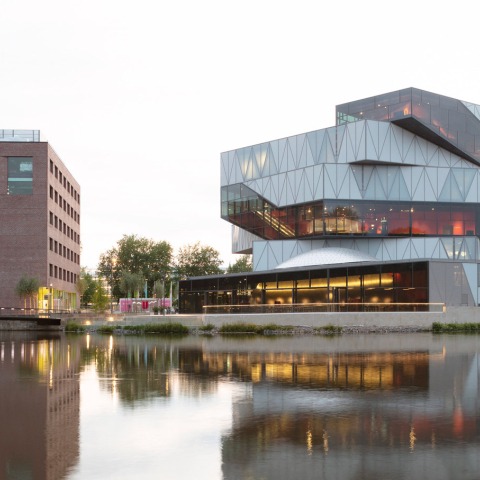 This emblematic building stands at the centre of Heilbronn, on an island in the River Neckar. It is conceived as a helical sequence of spaces offering an experience that is finely choreographed between the interior of the building and the surrounding landscape.