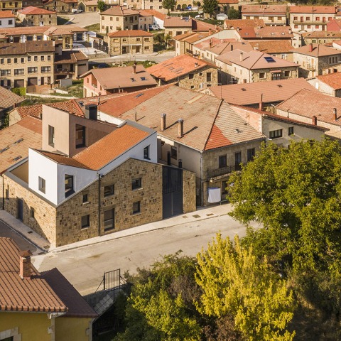 The house is located in Canicosa de la Sierra, Burgos. The design is inspired by the local natural monument known as “Pino-Roble”, which consist of a pine tree born inside a centenary oak, which is considered a symbol of the village.