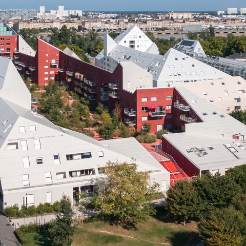 Ilot Queyries is the largest building in a development of four buildings masterplanned by MVRDV and Joubert Architecture. Ilot Queyries itself was designed by MVRDV with co-architects Flint, while Joubert Architecture and Flint also designed the other buildings in the development. The landscape architecture of Ilot Queyries was designed by MVRDV in collaboration with Sabine Haristoy and Flint.