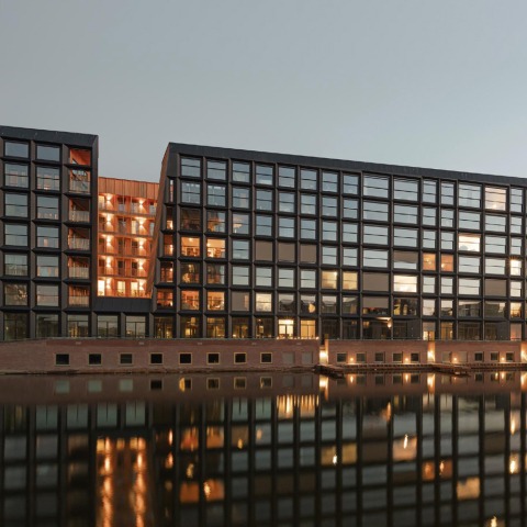 Jonas is located in the heart of IJburg, Amsterdam. IJburg is one of the artificial islands around the city, mainly providing housing environments for families. The project completes the center of IJburg, which is organized around a marina. Jonas is a new residential building with commercial and social facilities, together with a rich public realm. The building is designed by Orange Architects, commissioned by Amvest, and developed in collaboration with Felixx, Ballast Nedam West, and ABT.