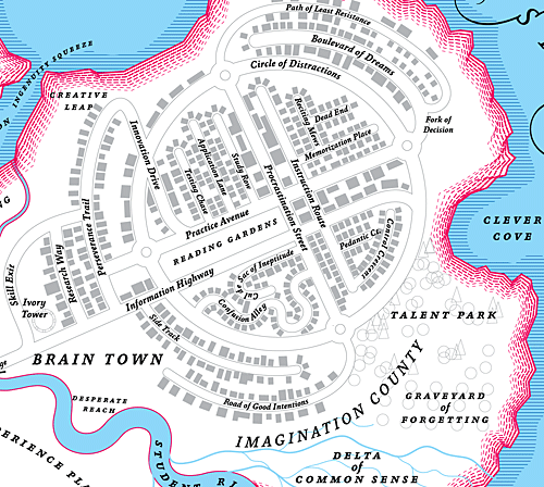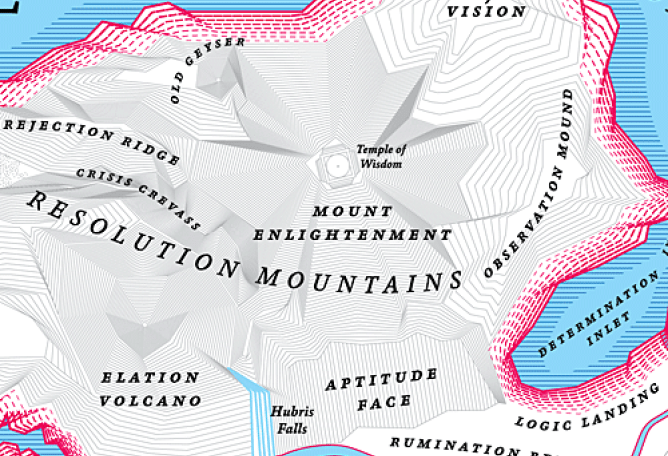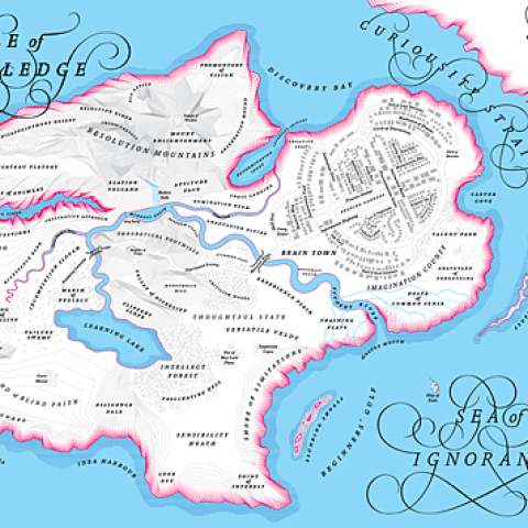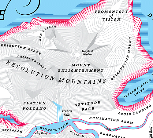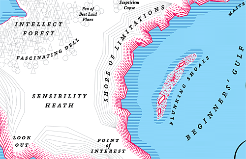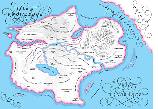 Wonderfully detailed map of the Land of Knowledge by Marian Bantjes, reminiscent of this 1977 German map of the Empire of Love.