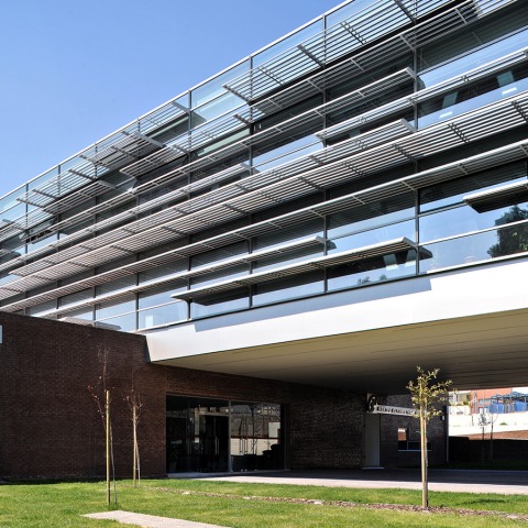 The void/gate formed by the unequal volumetric development of the building guides the pedestrian traffic towards the adjacent sports centre and the residential area at the rear. Through this “urban” intervention, the City Hall as a “link”, connects the commercial center of the city with the residential zone that lies on its north side.