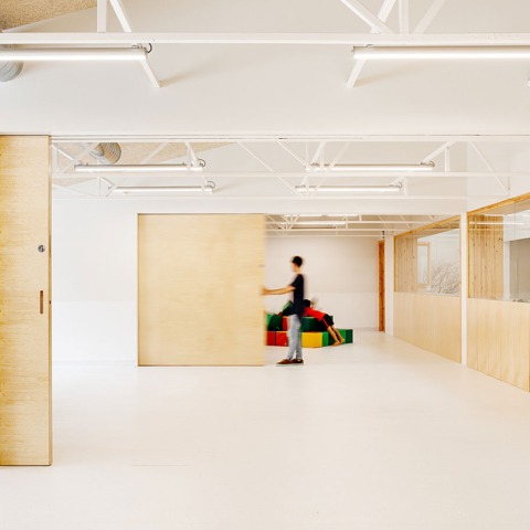 Each element has been treated as a piece of furniture capable of incorporating several functional responses. In this way, the fixed divisions, composed of see through screens, turn into the lockers of each student. The stands are at the same time cupboards. The workshop / toilet volumes serve as support for 8 mobile partitions that allow dozens of spatial configurations.