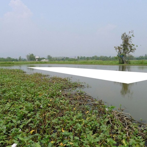 While the Land is inherently a rice field and a farm, freely accessible to all, it is also host to several useful architectural constructions such as shelters, kitchens, and platforms for lectures or performances. Thus far the contributors have included artists such as Kamin Lertchaiprasert, Tobias Rehberger, Philippe Parreno, François Roche, Carl Michael von Hausswolff, Superflex, and Rirkrit Tiravanija. The most recent project at the Land is designed by Frankfurt-based architects Nikolaus Hirsch and Michel Müller: a structure that comprises studios, workshop space, and shelter.