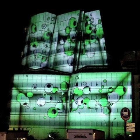 Introducing "Light Lining" to the US. A technique of projection mapping 3D content. Working in collaboration with Vimeo to conclude the Vimeo Festival and Awards, the Frank Gehry IAC HQ (Chelsea, New York), provided the perfect canvas for our transformation of sight and sound.