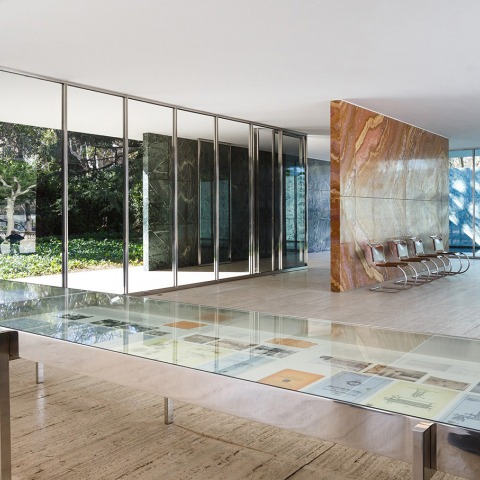 The intervention transforms the Pavilion by removing double-gazed screen and making the skylight, that originally established the hierarchic differences between the inside space (restricted to the authorities) and the popular outside space (where general public could sit). A horizontal display-case is settled in its place that suggests an unusual path inside the Palaces, shown by documents (letters, pictures, patents, hallmarks and blueprints) from a dozen different archives and private collections from Barcelona, Berlin, Dessau, Frankfurt, Madrid, Sevilla and Weimar. The intervention recovers the “great photos of Barcelona” that Lilly Reich herself regretted losing in a bombing in Berlin and that show how her display-cases accomplished the scalar transition from the great variety of German products to the very diverse spatial structures of the Palaces.