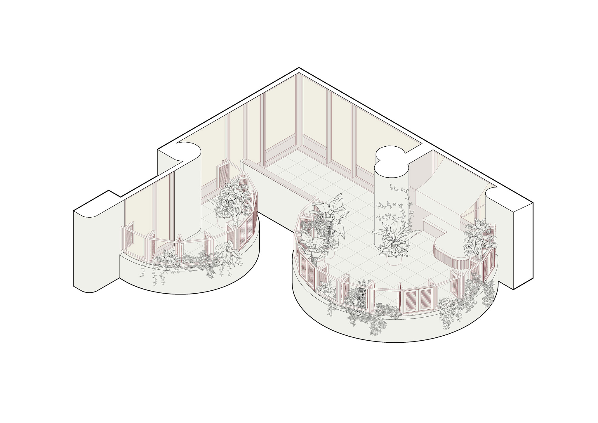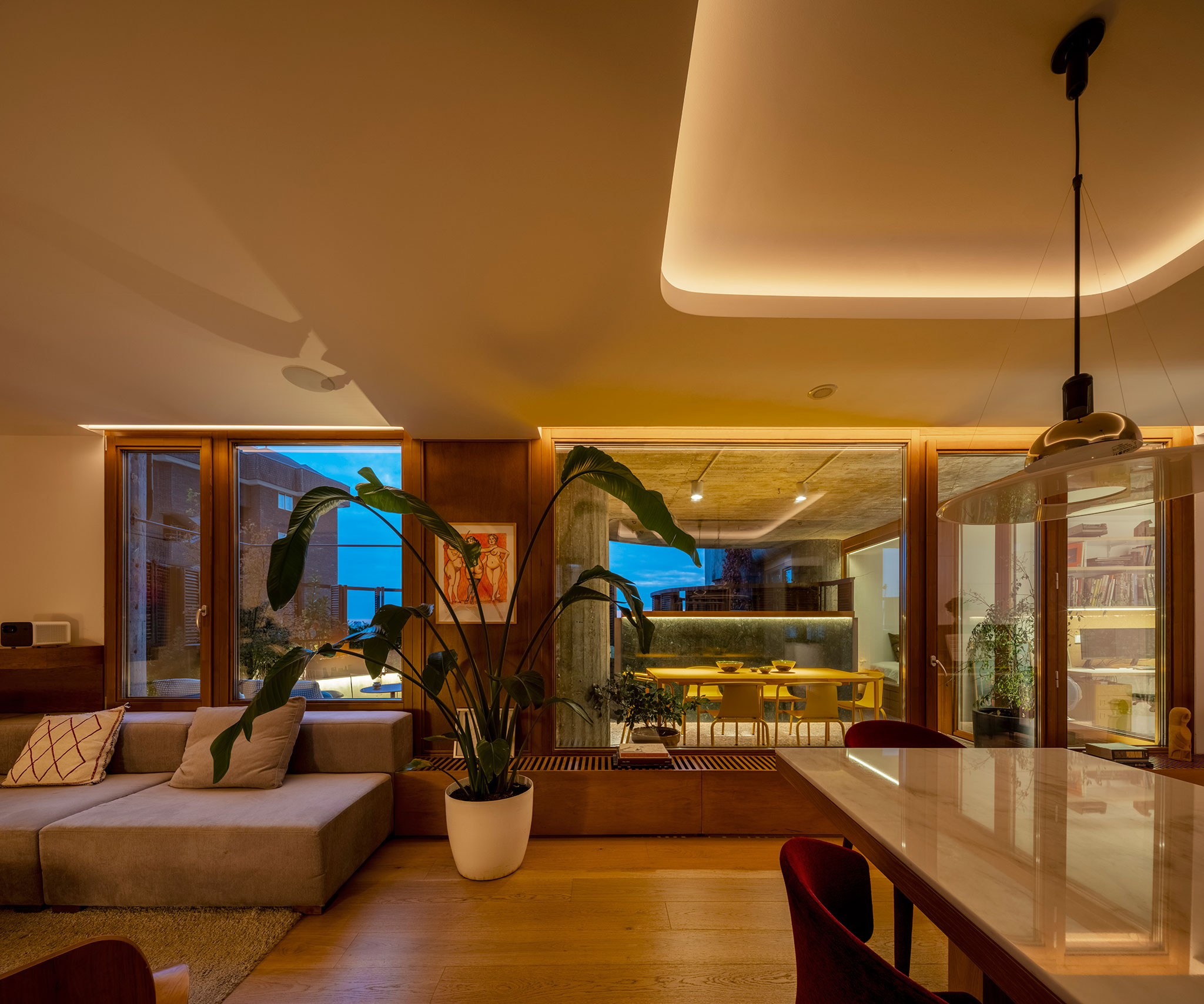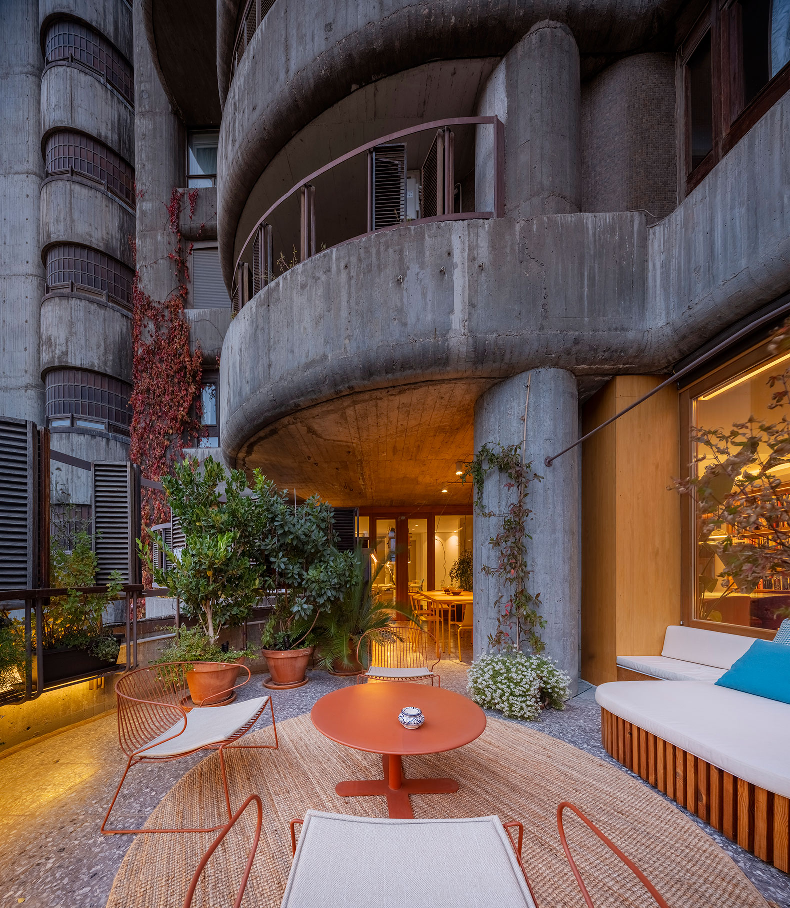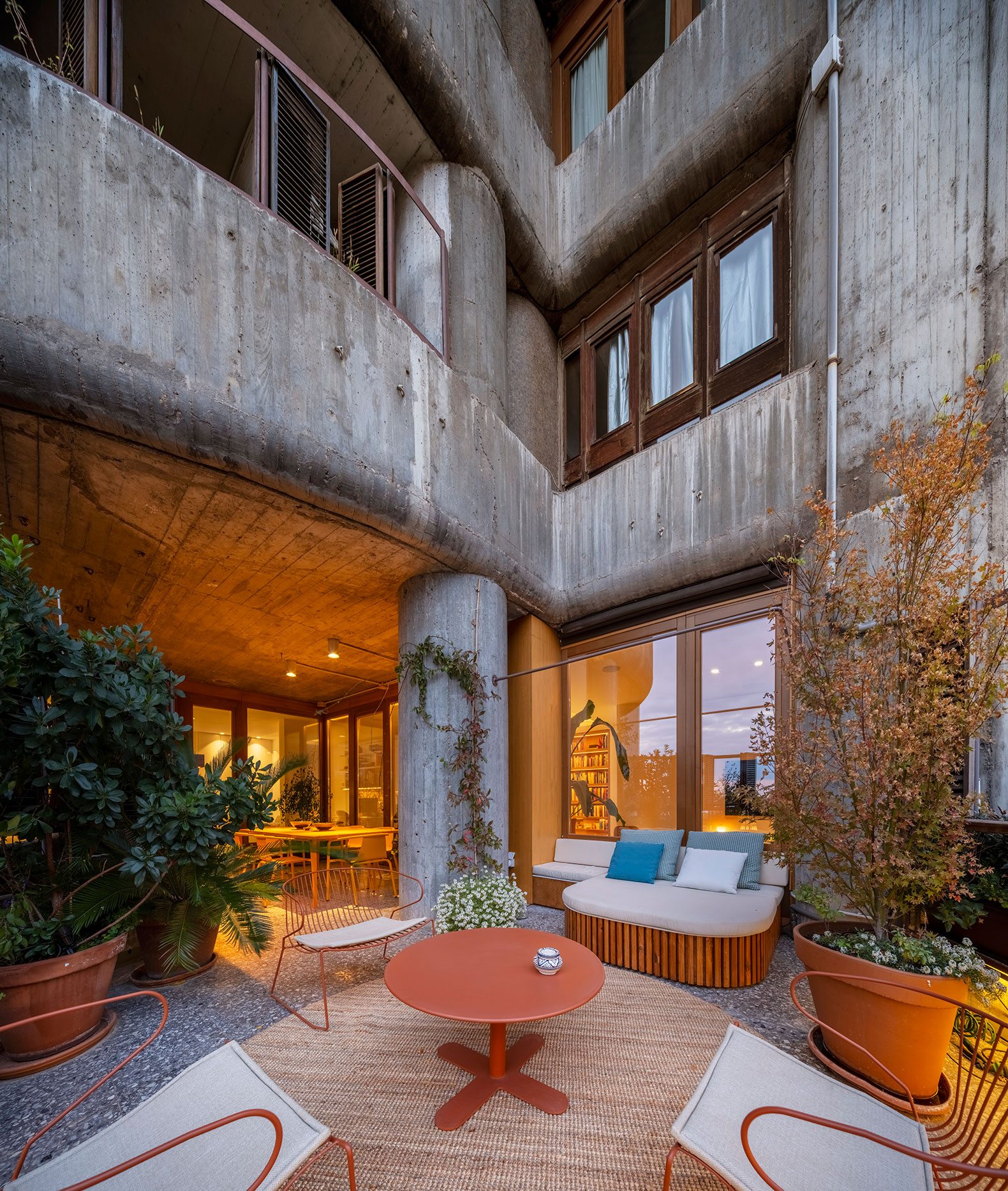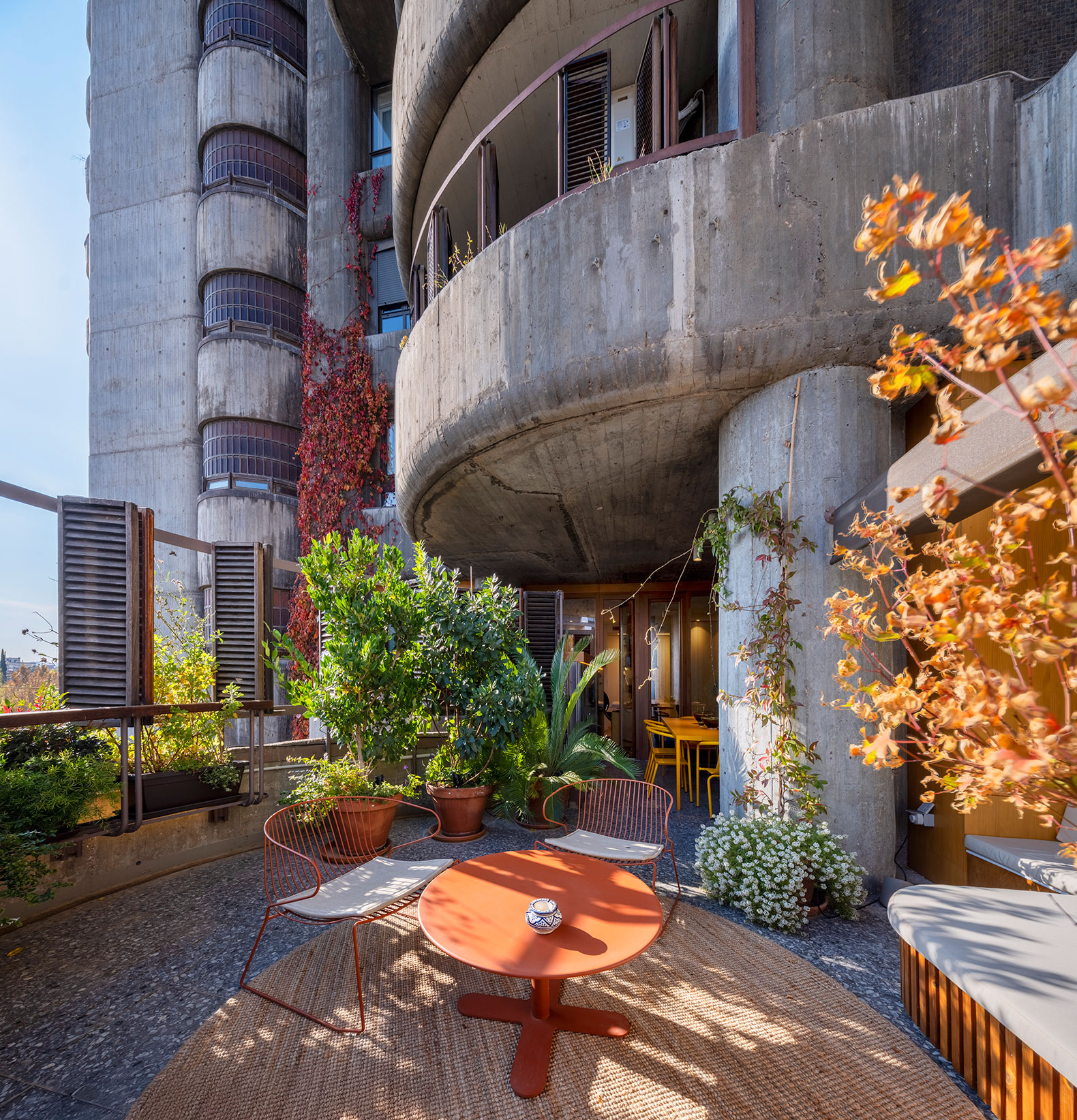 Oíza conceived the apartments in the building as high-rise villas with gardens. The apartment is organized in an L-shape, and all the rooms opened onto a continuous outdoor terrace. This idea of restoring the original terraces is key to the project, as it re-establishes the indoor-outdoor connection that had been lost, creating a new garden on the terraces.