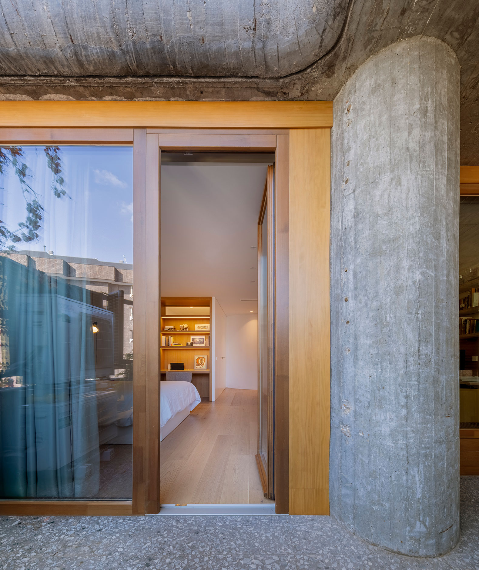 The exterior windows were made of natural wood, just as in Oíza's original design.