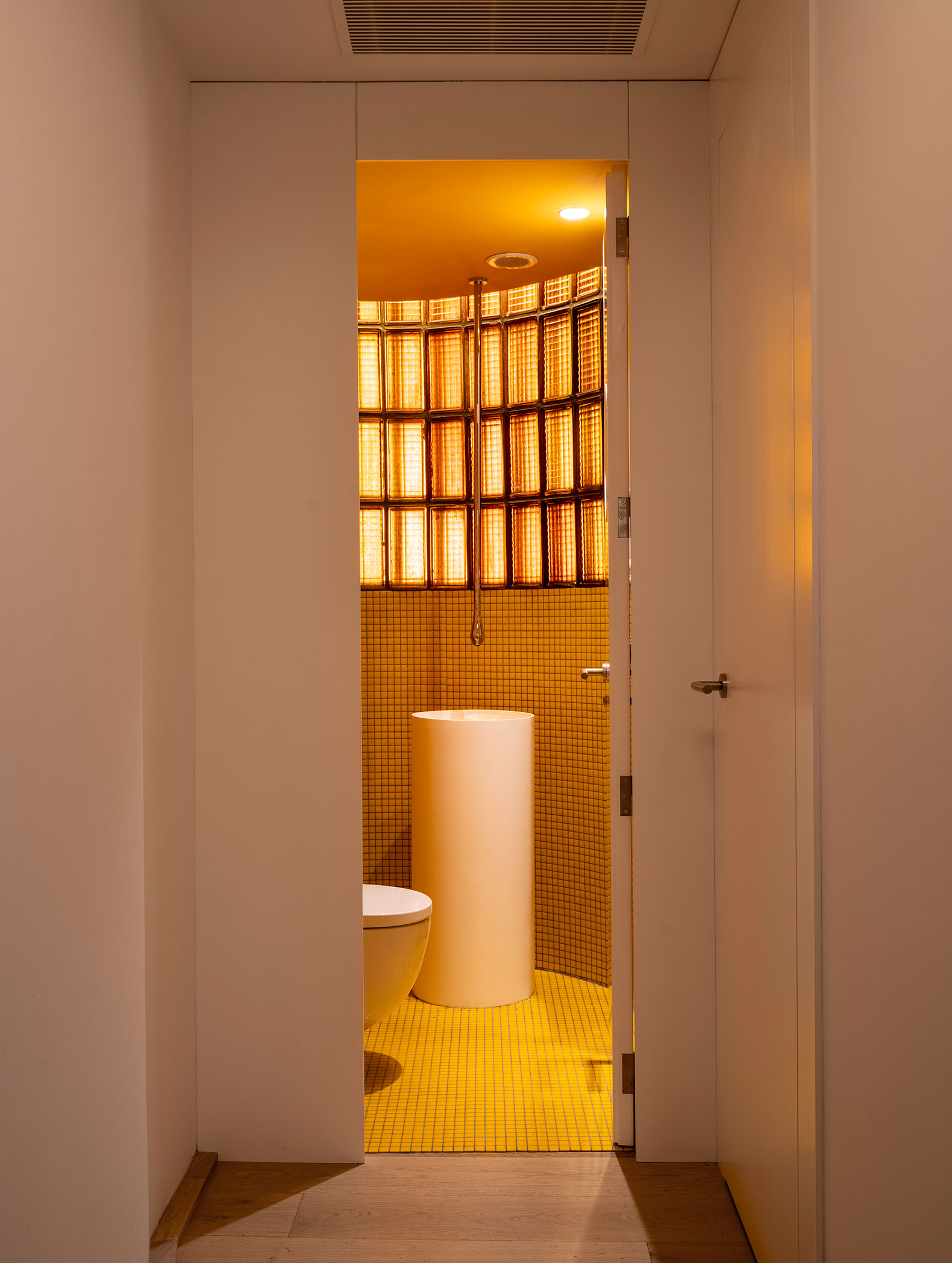 We also restored other elements, such as the exterior shutters, the yellow glass blocks, and the dumbwaiter that connected the former restaurant on the 22nd floor to each of the apartments.