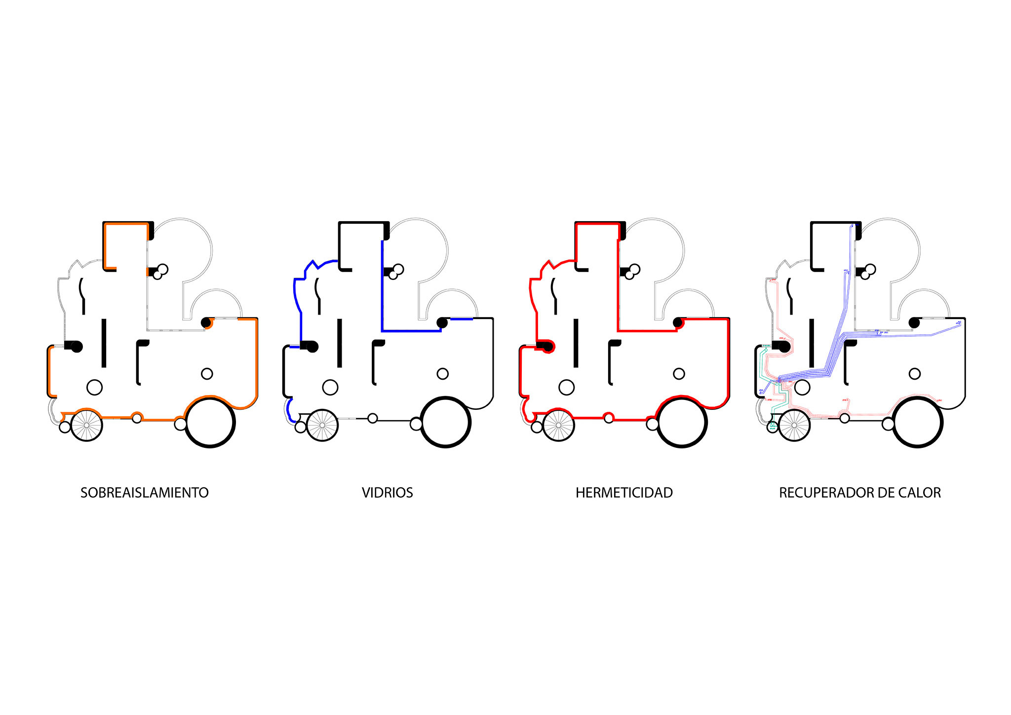 The goal was always to achieve a nearly zero-energy home. To this end, we followed the principles of the German Passivhaus certification. The main interventions were: