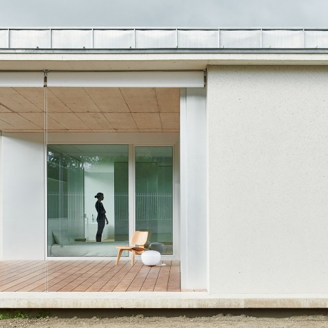 The heart of the project is a 5x5 metre courtyard that empties the main room in its centre and visually links the whole house, making it a place rich in transparencies, reflections, colours and nuances thanks to the glass that surrounds the courtyard. It also functions as an impluvium that collects the rain from the zinc roof in two gargoyles to transfer it to the trees, plants and a circular fountain. The courtyard is also a phenomenological element that transforms the house depending on what is happening and the climatic conditions at any given moment (temperature, humidity, sun, shade, wind, rain, snow…). But, in addition, it is a place that is simultaneously exterior and interior that can be incorporated into the rest of the house by opening the sliding aluminium frames located on its north and south faces. This helps to regulate the climate of the house naturally as needed, refreshing it with the scent of plants or populating it with the murmur of water. To the southwest of the courtyard, there is a kind of engawa that is visually and physically open to the surrounding garden, which turns the house into a universe that looks both at itself and around it.