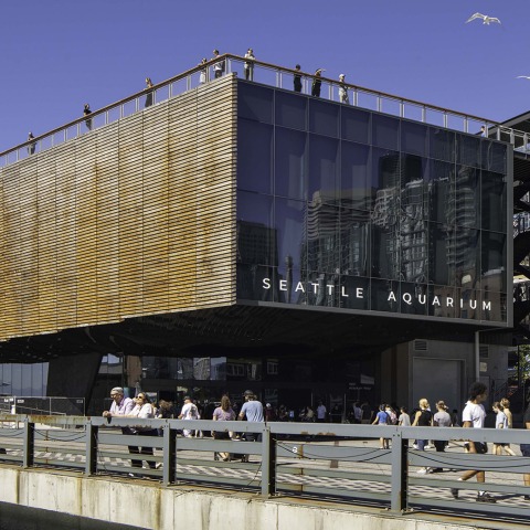 Guided by an ethos of interconnectivity and mutual care of the one world ocean, the Seattle Aquarium’s Ocean Pavilion is the latest addition to the Seattle Aquarium’s existing facilities on Piers 59 and 60, expanding the Aquarium’s sustainable campus. The new Ocean Pavilion highlights the connection between people and marine life at home and around the world. Ocean Pavilion also serves as a link to downtown Seattle, Pike Place Market, the newly revitalized central waterfront, Elliot Bay, and the ocean beyond.