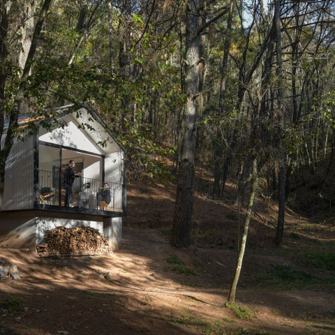 The project has a first stage of a glamping composed by different built pieces in the lower area of a forest terrain in the Sierra de Santiago, Nuevo León, México, located in the outskirts of Monterrey city.