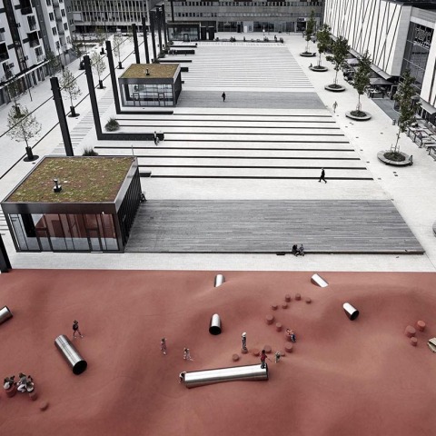 Täby Torg is now a multifunctional gathering point designed to accommodate a wide variety of activities on the 10.000 sqm square. The urban space is a place for the citizens of Täby to gather for farmer’s markets, to experience large rock concerts and enjoy summer days in the cafes while the kids play in the orange playground. This dynamic everyday space is created both for the big events and for the small everyday activities – An open invitation for urban life.