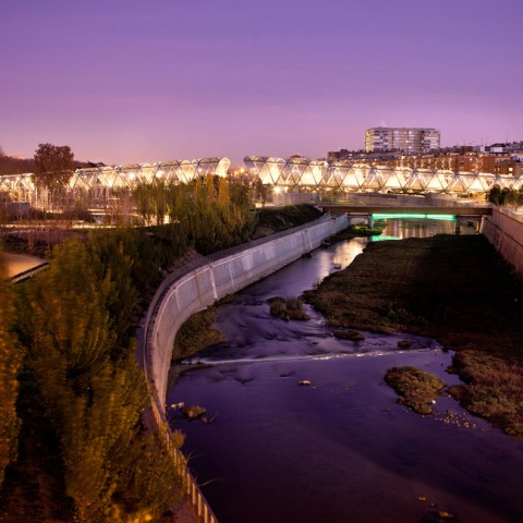.../... "Now people who opened their windows onto the sound of cars, open their windows onto the sound of birds,” is how Ms. Martínez, the Madrid official, put it. It’s only a pity that the city also awarded Dominique Perrault, one of the celebrity architects who lost the competition, a late commission. Evidently nervous about leaving the project without a new architectural landmark, the government approved his costly design for an oversize footbridge.  Wrapped in an immense, incongruous spiral of Mr. Perrault’s signature stainless-steel mesh, the striking bridge blocks views and conjures up some giant antenna that has crashed in the park."